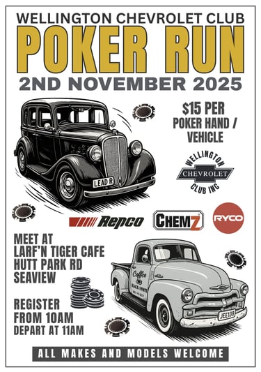 The Wellington Chevrolet Club is hosting our annual Poker Run, and we’re inviting all makes and models to come along for the ride.